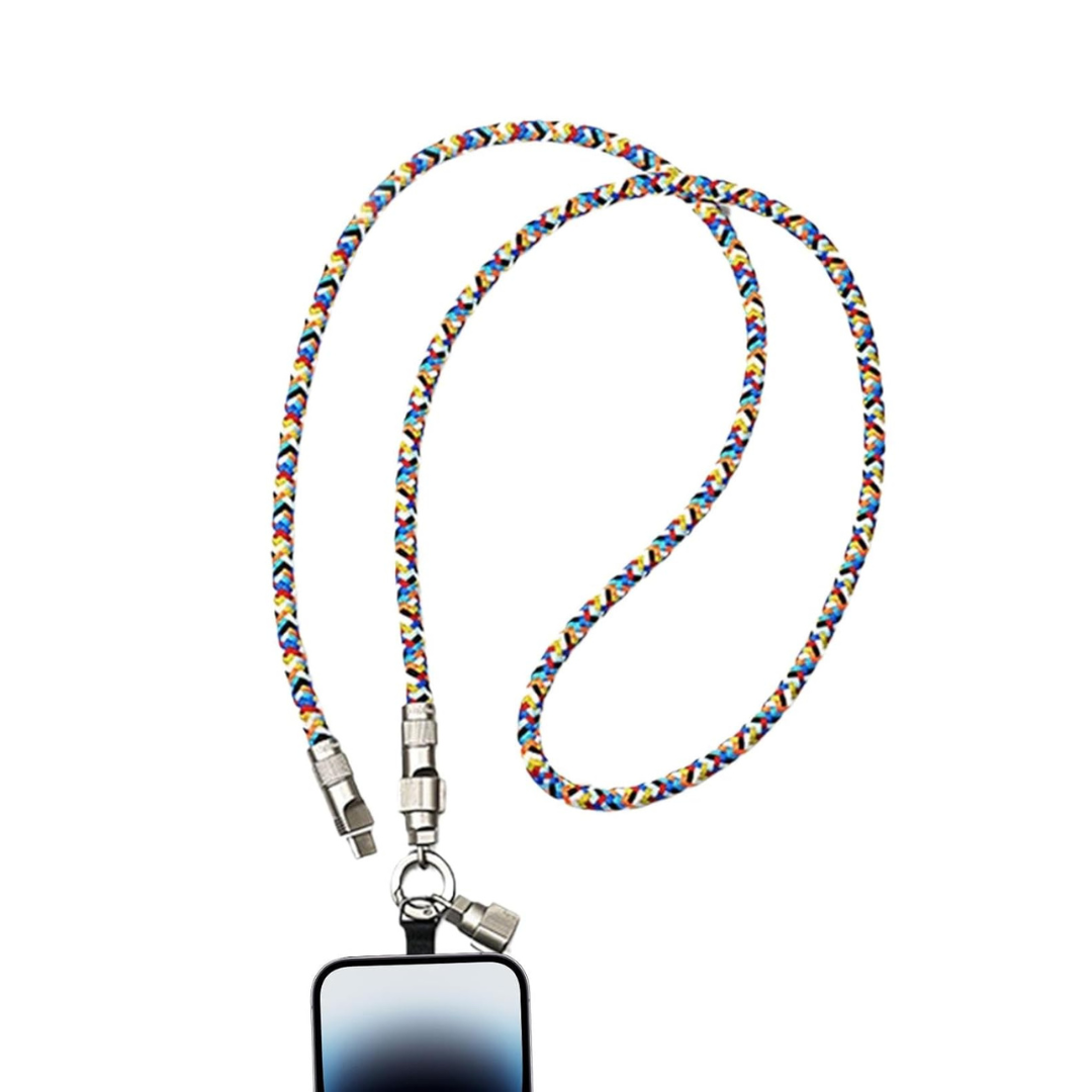 Fabricado con materiales de alta calidad, desde la cuerda de nylon trenzado ultra resistente hasta el mosquetón de metal con cierre por rosca, está diseñado para durar. Ya seas un viajero frecuente, un entusiasta del aire libre, un padre que necesita manos libres o simplemente alguien que valora la practicidad, este cable-cuerda se convertirá en tu accesorio indispensable. Mantén tu dispositivo seguro, cargado y siempre a mano sin complicaciones.