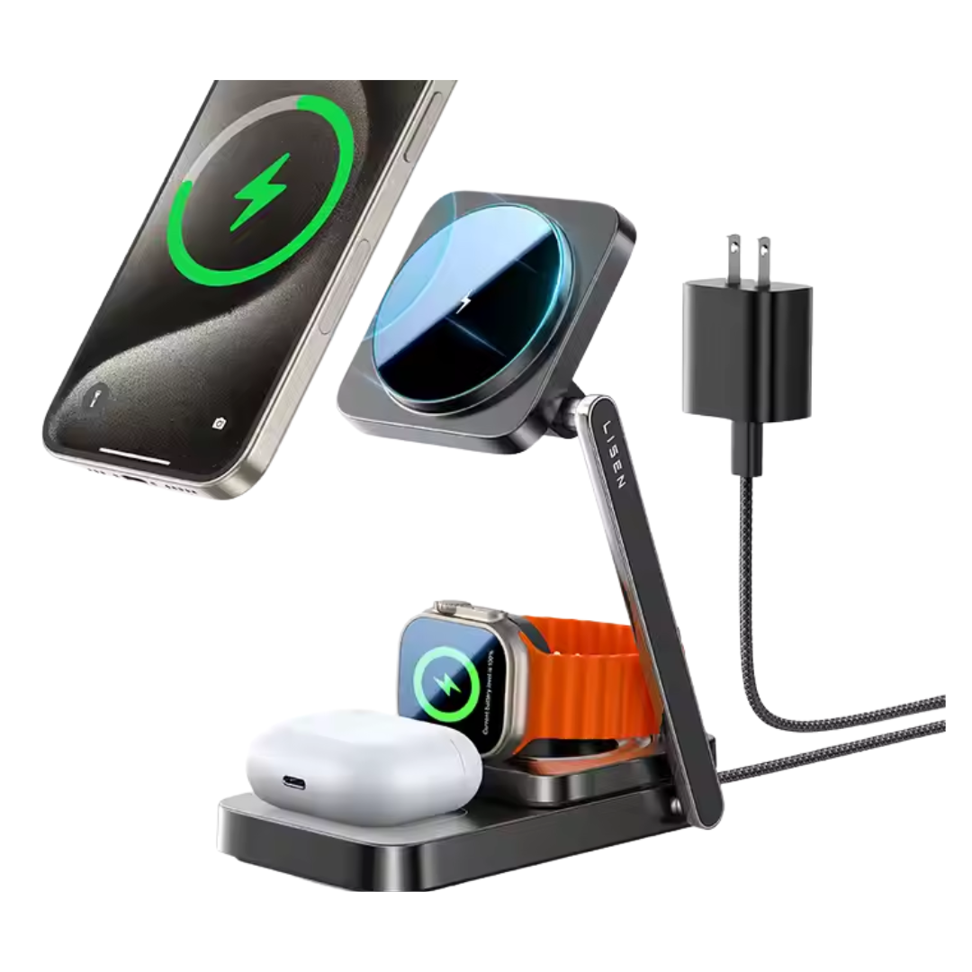Cargador Inalámbrico 3 en 1 LISEN MagSafe – Estación de carga para iPhone, Apple Watch y AirPods