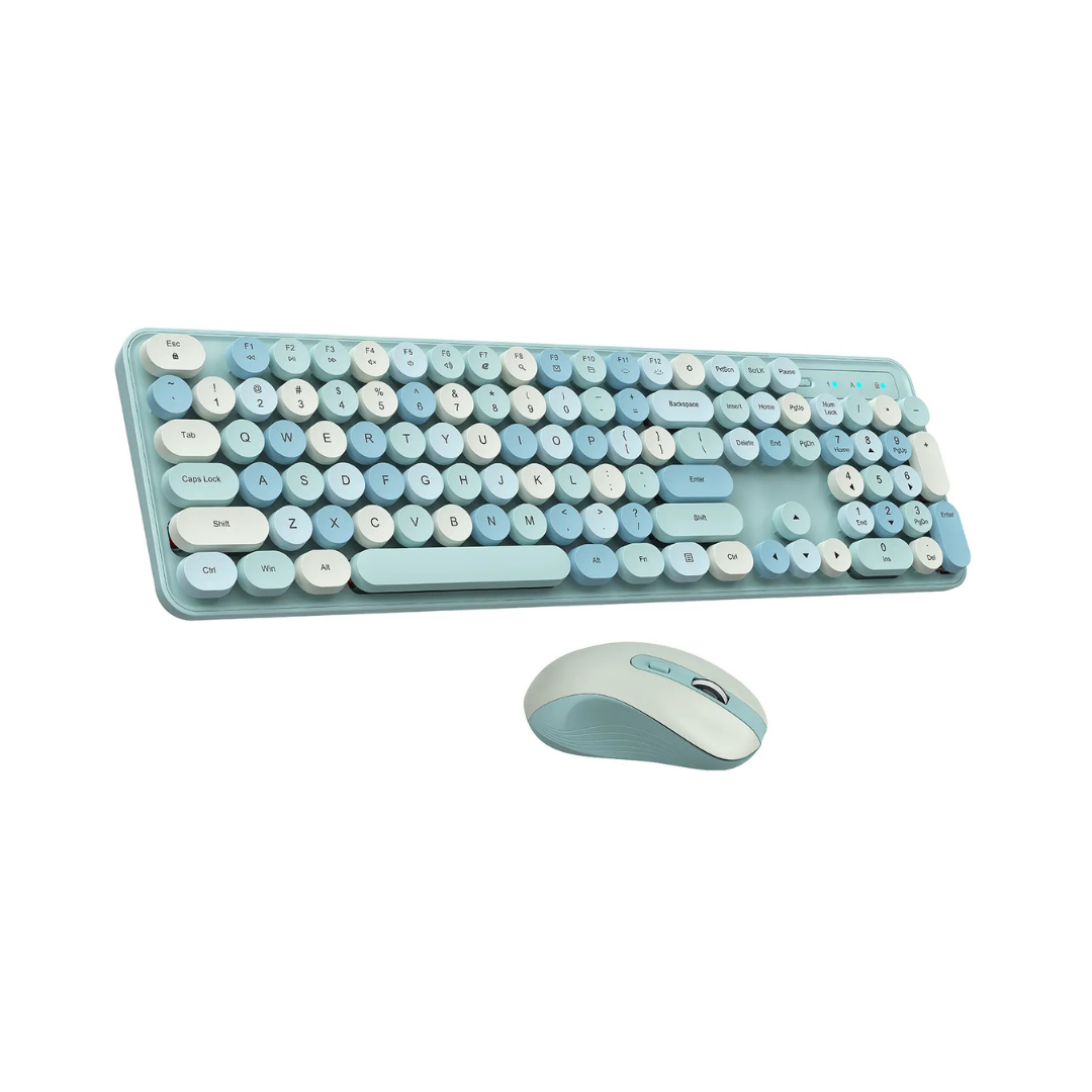 Agrega estilo, color y funcionalidad a tu escritorio con este combo de teclado y mouse inalámbrico tipo máquina de escribir. Su diseño retro con teclas redondas en colores vibrantes transforma cualquier espacio en un entorno más creativo y divertido, sin sacrificar la comodidad ni el rendimiento. Con 109 teclas y un soporte plegable, este teclado ofrece una experiencia de escritura fluida, cómoda y silenciosa, ideal tanto para trabajar como para estudiar.