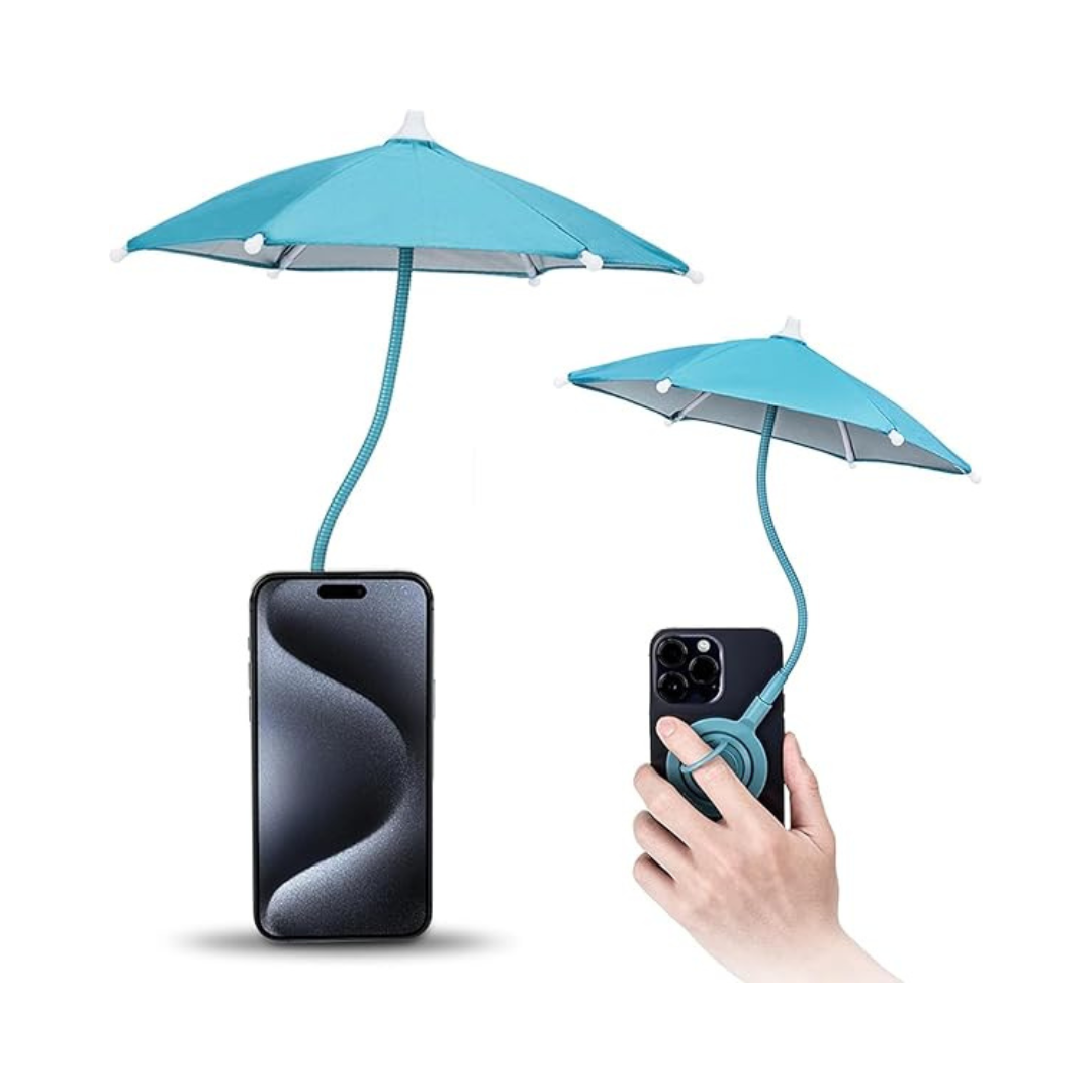 Fabricado con tela de alta calidad con protección UV, reduce el cansancio visual y mantiene tu pantalla fresca bajo la luz intensa. Compacto, ligero y portátil, este mini paraguas es ideal para actividades al aire libre, viajes, playa o simplemente para darle un toque creativo y único a tu smartphone.