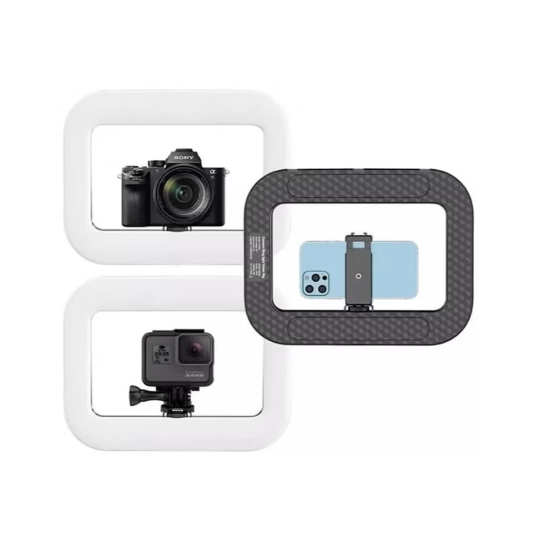 Nevo Neepho MJ-28 Mini Ring Light Cuadrado RGB con Tecnología HSI – Tricolor, Compacta, Iluminación Profesional 360° y Rotación Panorámica para Fotografía, Maquillaje y Streaming